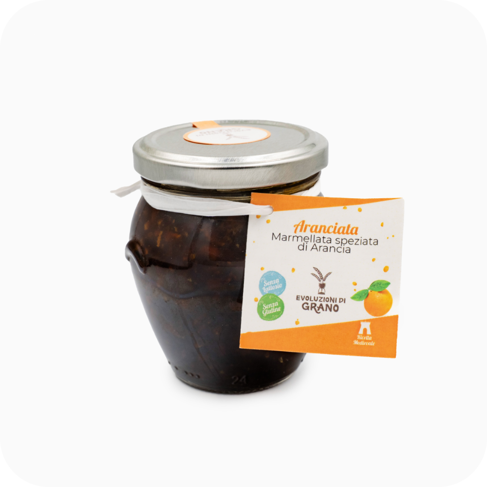 Orange marmalade, freely inspired by a medieval recipe book, prepared with juice and zest, cooked in honey and sugar, flavoured with a hint of cinnamon.