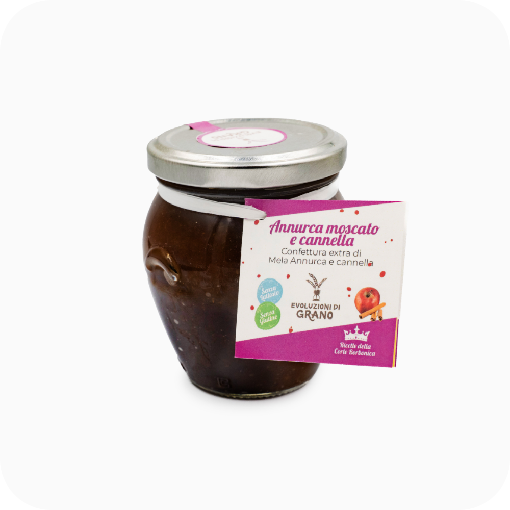 Confettura di mela annurca, cotta in succo di arancia e vino moscato, aromatizzata con cannella e zenzero. La ricetta è tratta da “Il cuoco galante” di Vincenzo Corrado, cuoco e capo dei servizi di bocca presso la Corte Borbonica di Napoli nella seconda metà del Settecento. Ideale per la prima colazione e da abbinare alla degustazione di formaggi di media stagionatura.